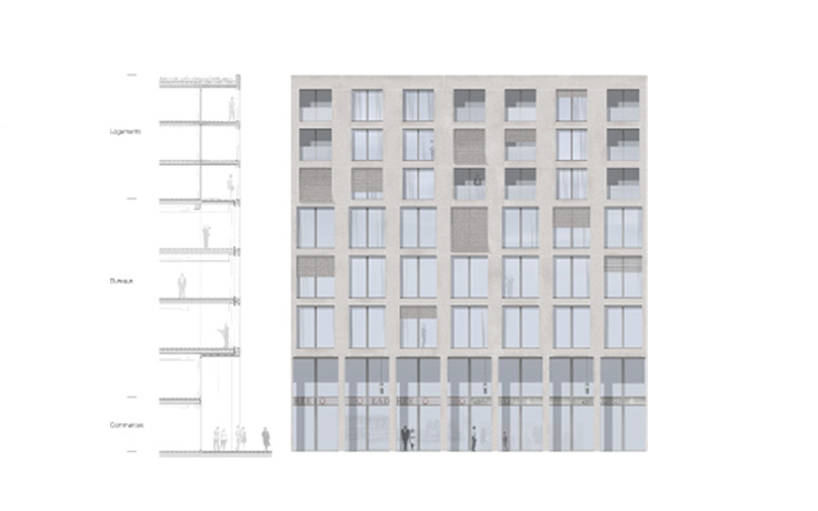 Logements, bureaux, galerie commerciale et parking